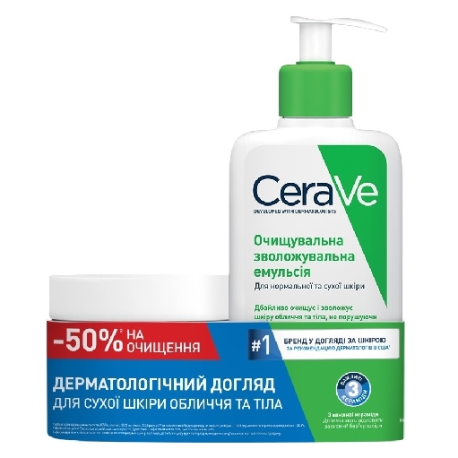Набір CeraVe (Сераве) Зволожувальний крем 340 мл, Очищувально-зволожувальна..СераВе ЛЛС (Франція)