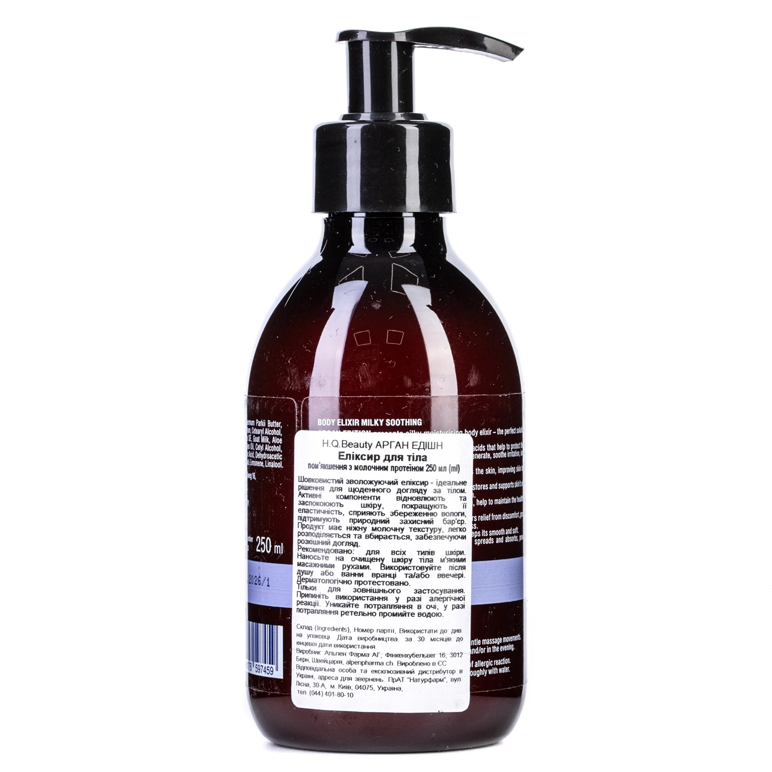 Еліксир створений спеціально для ніжного щоденного догляду за тілом. Глибоко зволожує, заспокоює та відновлює шкіру. Підтримує захисну функцію шкіри, покращує її пружність та еластичність. Шкіра набуває здорового вигляду та сяяння.