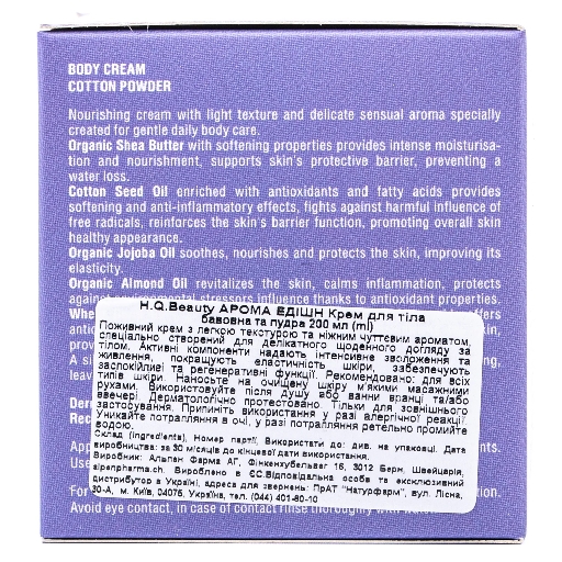 АШКЬЮ БЬЮТІ АРОМА ЕДІШН Крем/тіла 200мл бавовна та пудра