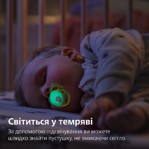 Основа пустушки ніжно світиться у темряві, щоб ви могли легко знайти пустушку, не вмикаючи світло.