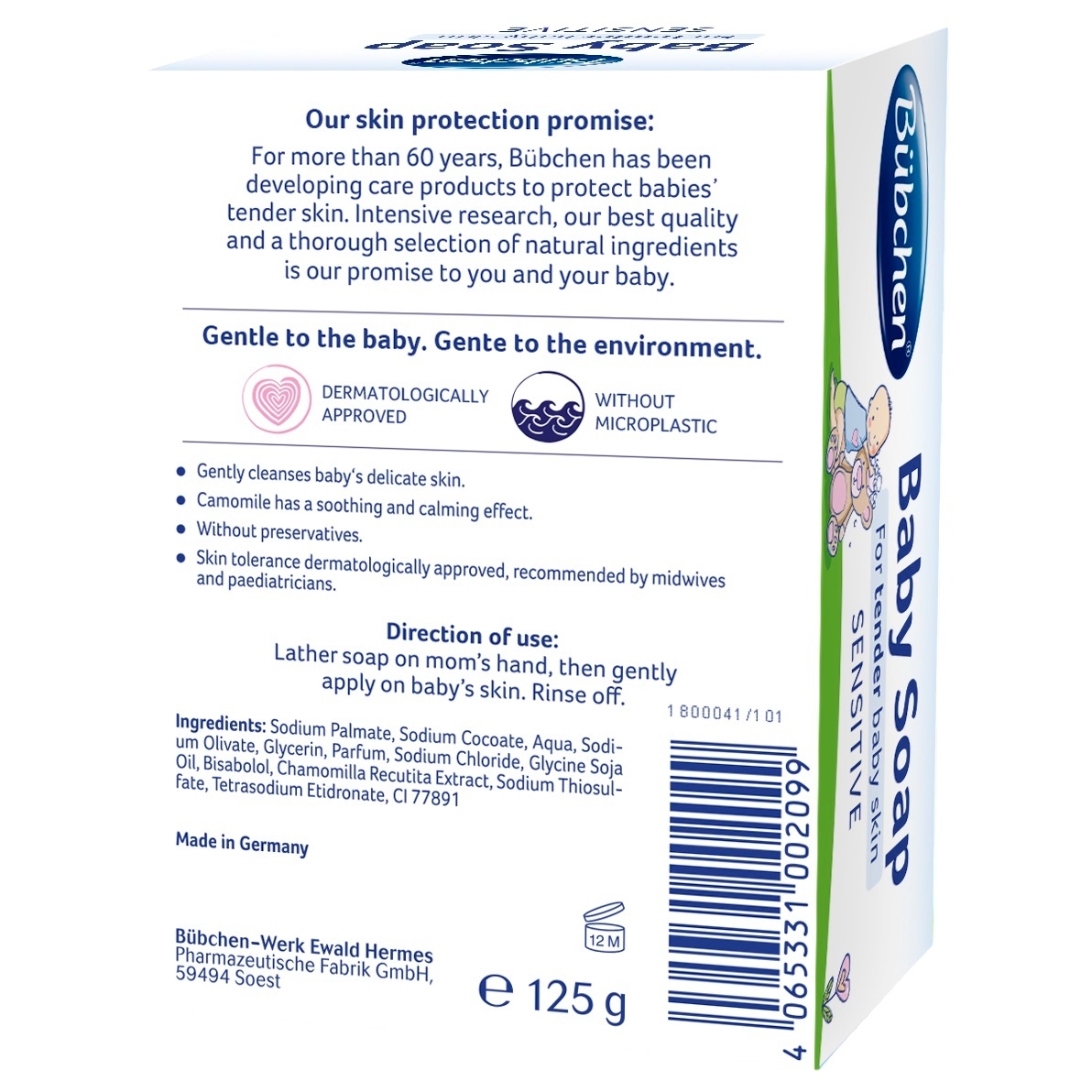 Завдяки натуральним компонентам та цінним рослинним маслам Бюбхен гарантує ніжний догляд за ніжною шкірою дитини. Вся продукція виготовляється з урахуванням найсуворіших гігієнічних вимог та під постійним контролем. Переносність косметики шкірою перевіряється ще раз численними тестами.