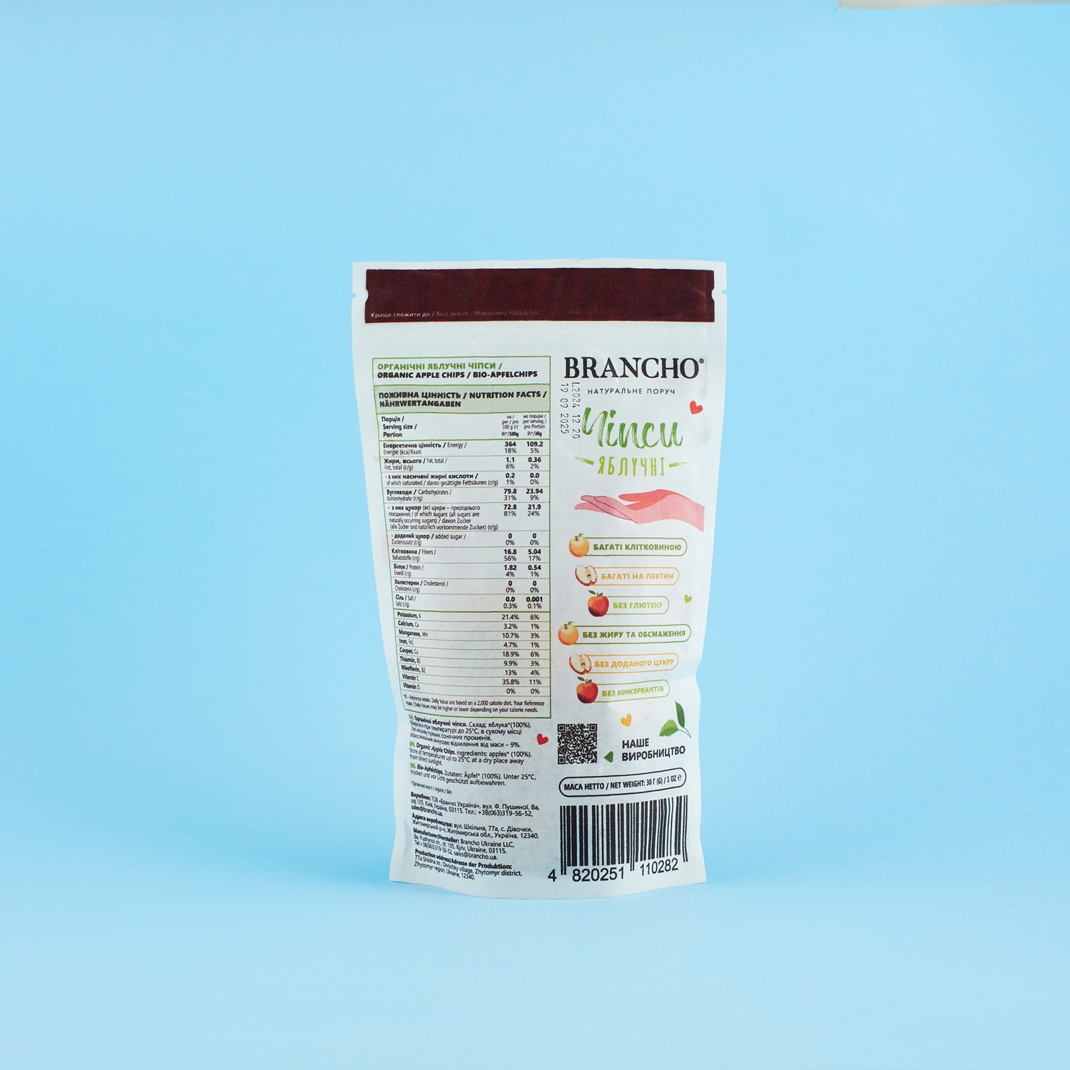 Яблучні чіпси Brancho — це смачний і корисний перекус, створений із натуральних яблук без додавання цукру та консервантів. Хрусткі, ароматні й легкі — ідеальні для тих, хто цінує здорове харчування. Brancho — коли користь має смак!