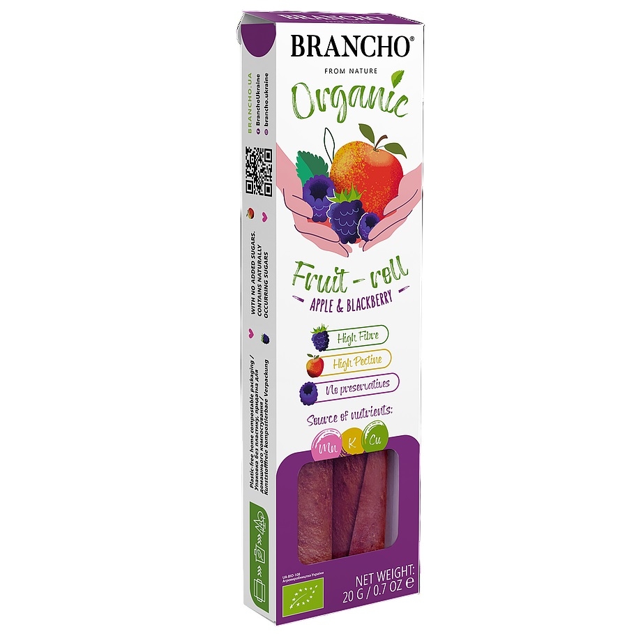 Фруктові та овочеві роли Brancho – це зручний та здоровий перекус на основі яблук та широкого переліку фруктових, ягідних та овочевих смаків. Щоб зробити натуральні фруктові роли, ми ретельно перетираємо фрукти з яблуком та сушимо отриману фруктову суміш при температурі до 45 C. Ми не підварюємо фруктове пюре. Це значно збільшує усушку продукту, але так ми зберігаємо більшу частину вітамінів та поживних речовин.