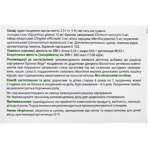 БРОНХО ВЕДА ТРАВ'ЯНІ ЛЬОДЯННИКИ ЗІ СМАКОМ ЛИМОНУ (BRONCHO VEDA HERBAL LOZENGES WITH LEMON FLAVOUR)