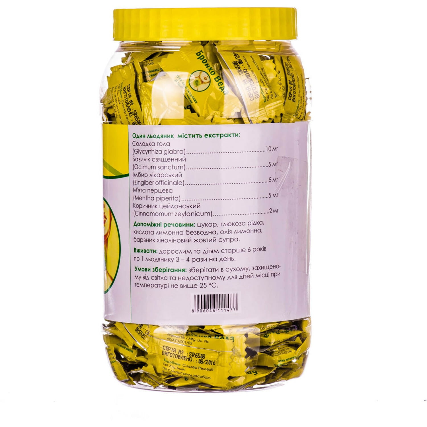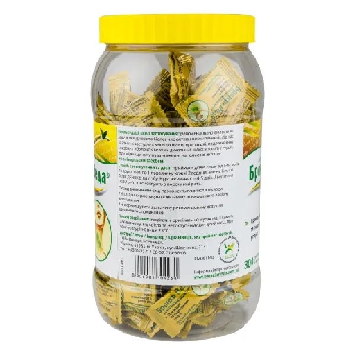 Допоміжні речовини: цукор, глюкоза рідка, ароматизатор лимона, барвник тартразин Е 102.