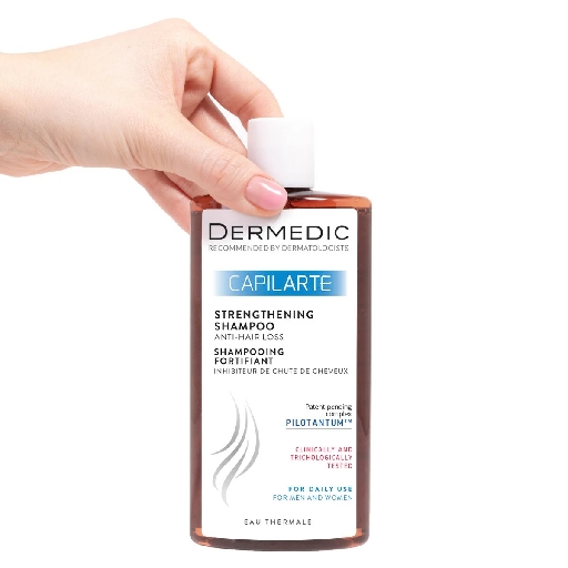Зміцнюючий шампунь CAPILARTE, який запобігає випадінню волосся різного походження, рекомендується для щоденного використання цілий рік людям з генетично стоншеним, рідким волоссям та схильністю до його випадіння, а також тим, хто відчуває тимчасове ослаблення та випадіння волосся через негенетичні фактори. Його рекомендується використовувати як продовження курсу стимуляції росту волосся CAPILARTE.