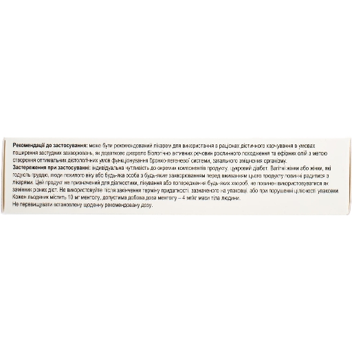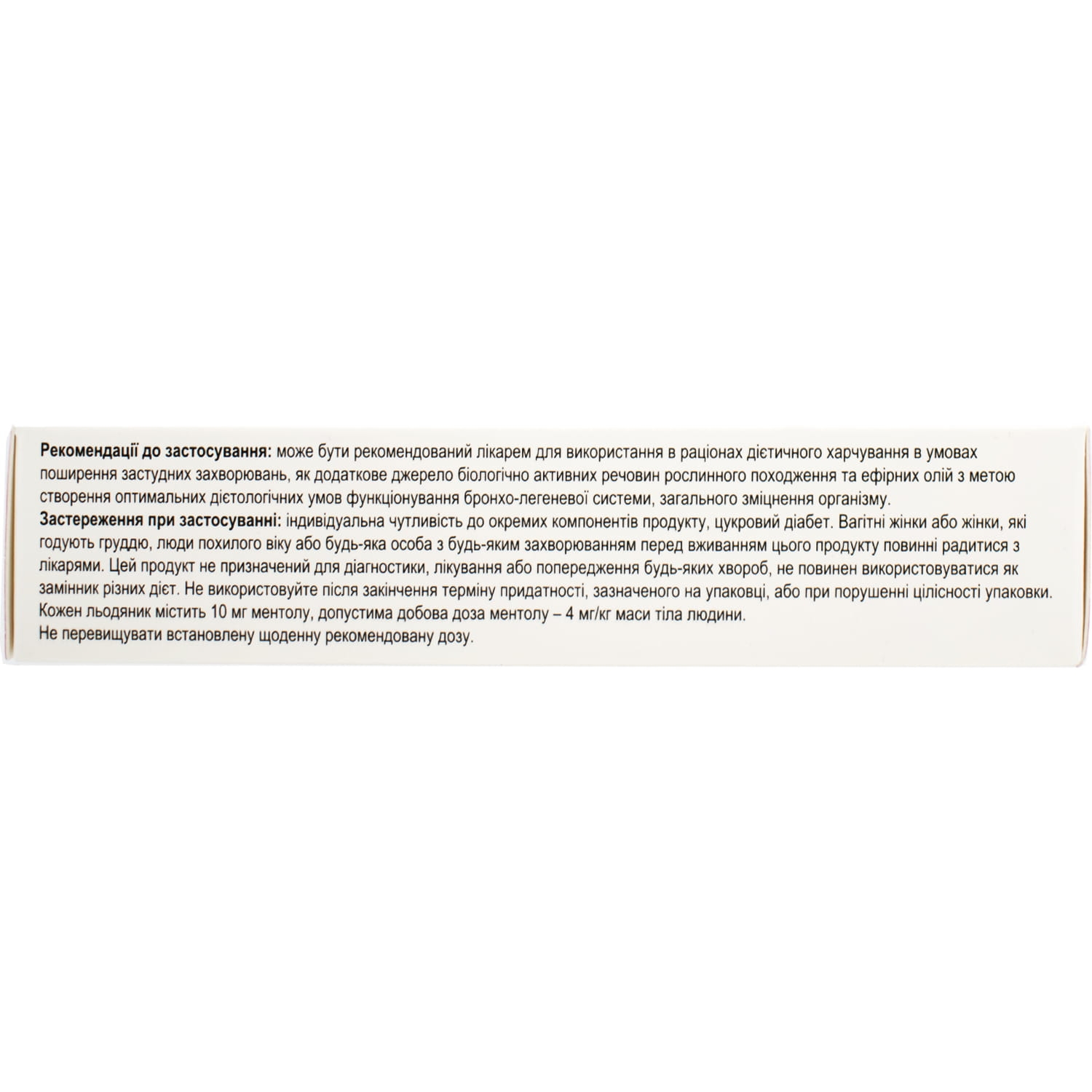 Кожен льодяник містить 10 мг ментолу, допустима добова доза ментолу — 4 мг/кг маси тіла людини.