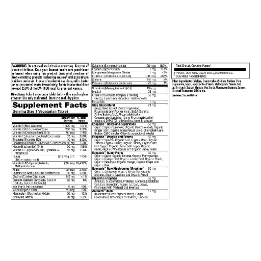 Ця таблетка в оболонці AromaSmooth зі свіжою м’ятою для приймання один раз на день містить збалансований набір поживних речовин для всього організму. Вегетаріанська добавка для підлітків Enhanced Energy містить вітаміни, мікроелементи та харчові каталізатори, органічні фрукти й овочі, а також суміші Ecoganic для підтримки енергетичного обміну, роботи нервової системи, здоров’я шкіри та зміцнення імунітету.