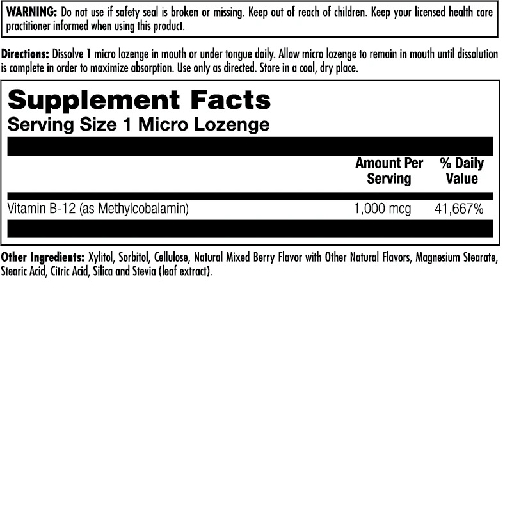 Пастилки KAL B-12 Methylcobalamin 1000 мкг містять вітамін B-12 у формі метилкобаламіну, також відомого як коензим B-12, вищої біологічно активної форми цього важливого вітаміну.