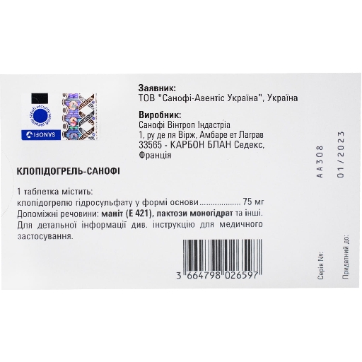 Дорослі, зокрема. пацієнти похилого віку. КЛОПІДОГРЕЛЬ-САНОФІ приймати по 75 мг 1 раз на добу незалежно від їжі.