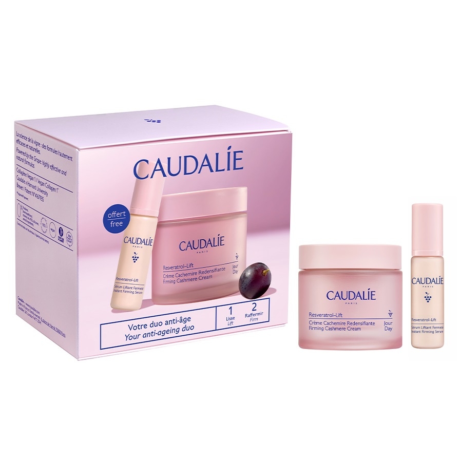 Набір Caudalie (Кодалі) Resveratrol-Lift (Ресвератрол Ліфт) Cashmere Set 2025 для пружної шкіри Крем Кашемір 50 мл, Сироватка 10 мл