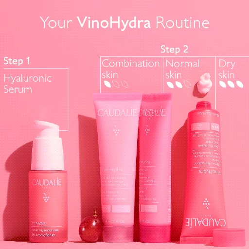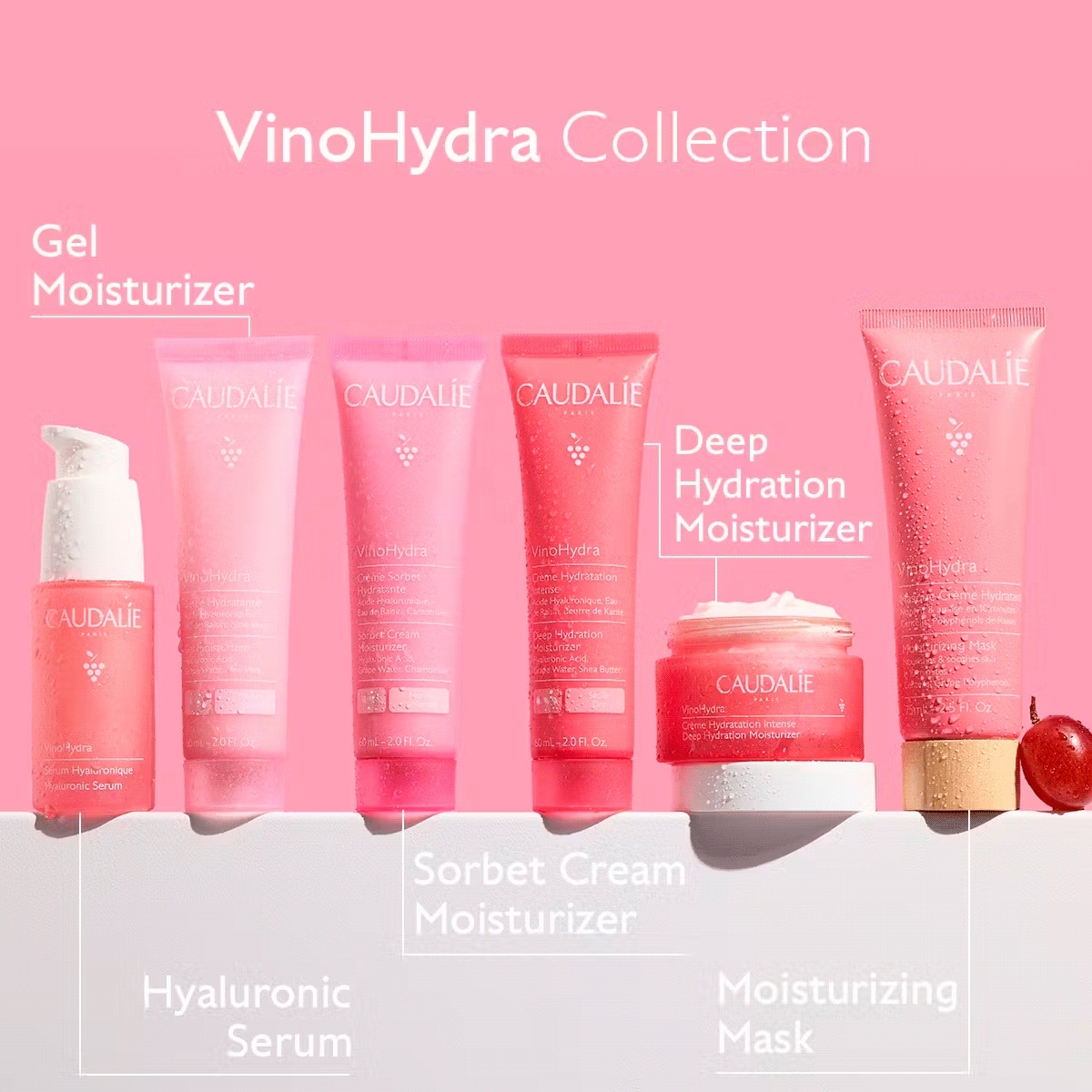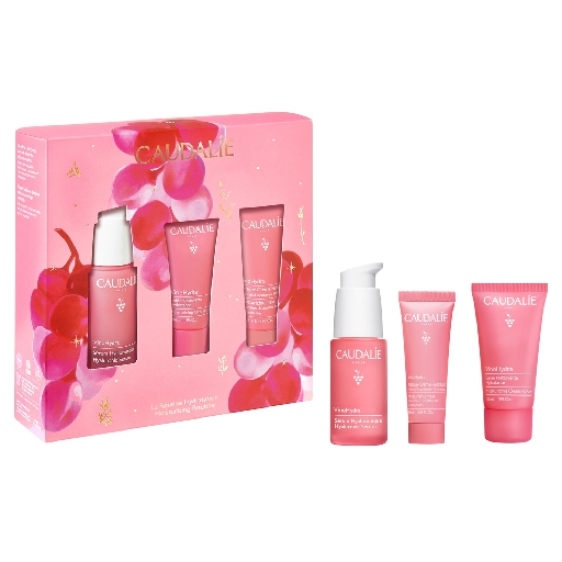 Набір Caudalie (Кодалі) Vinohydra (Віногідра) Serum Set 2025 Гіалуронова сироватка 30 мл, Зволожуючий гель для вмивання 30 мл, Зволожувальна Маска-крем 15 мл