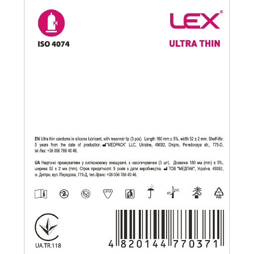 Надтонкі презервативи LEX Ultra Thin зберігають класичну природність відчуттів. Особлива технологія виробництва дозволяє зберігати всі показники надійності класичних презервативів за дотримання параметрів тонкості виробу.