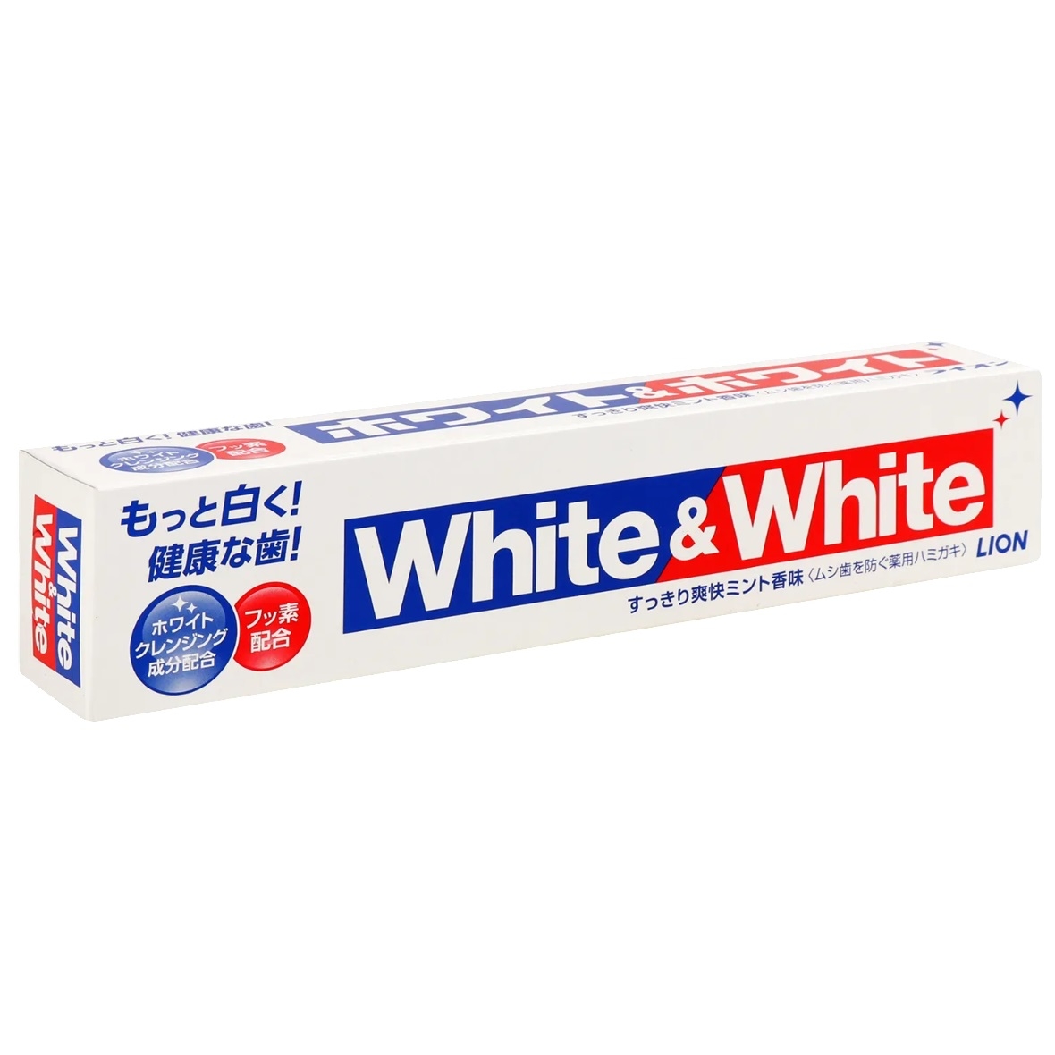 Зубна паста Lion White & White була вперше випущена в Японії в 1970 році компанією Lion Corporation. Вона стала однією з перших зубних паст у Японії, що використовувала новий активний інгредієнт — кальцій фосфат, який ефективно відбілює зуби, надаючи їм природну білизну. З того часу Lion White & White зарекомендувала себе як надійний продукт для щоденного догляду за порожниною рота, що поєднує ефективне очищення, відбілювання та захист від карієсу. Її популярність зберігається вже понад півстоліття, що підтверджує її статус «легенди» серед японських споживачів.