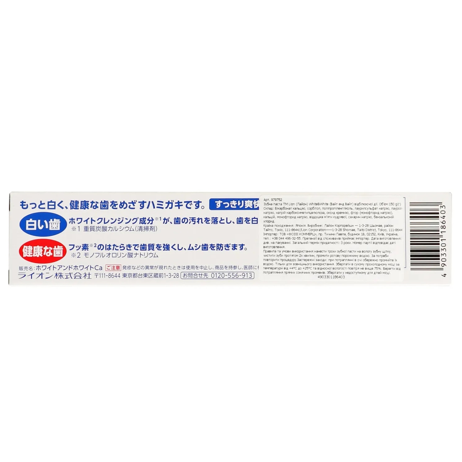 Lion White & White — легенда японського ринку. Освітлення емалі без агресивного втручання — ніжно, ефективно, щодня.
