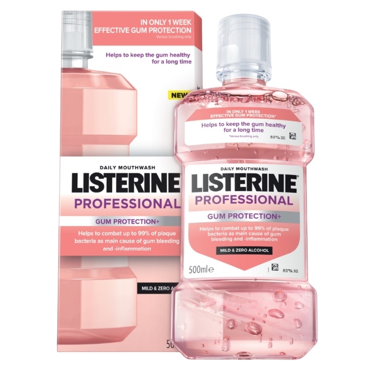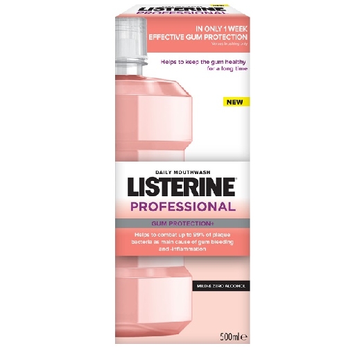 Ополіскувач для ротової порожнини Listerine Професійний «Захист ясен+» — це спеціальний засіб для щоденного догляду, який при застосуванні двічі на день після чищення зубів посилює ефект гігієни: знижує активність бактерій зубного нальоту — головної причини запалення й кровоточивості ясен. Формула поєднує ефірні олії, фтор і максимальну в лінійці Listerine концентрацію цинку, що дає помітний захист ясен і допомагає запобігати повторним проблемам.