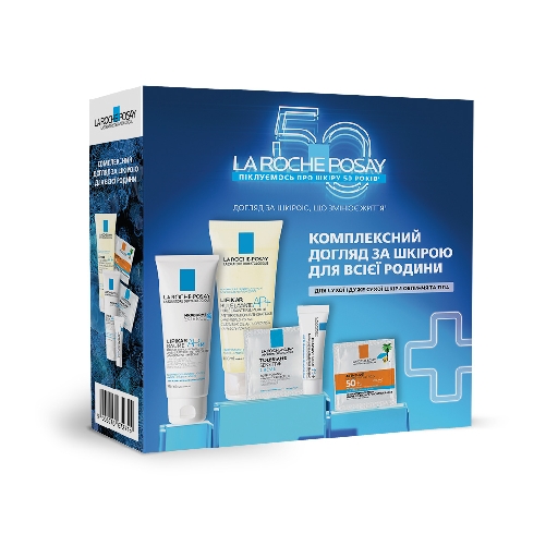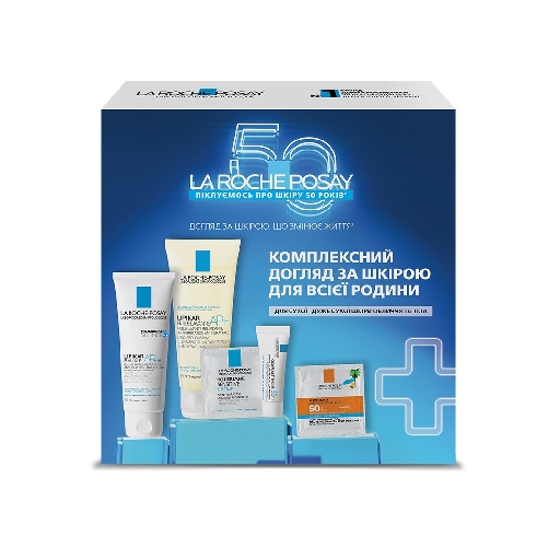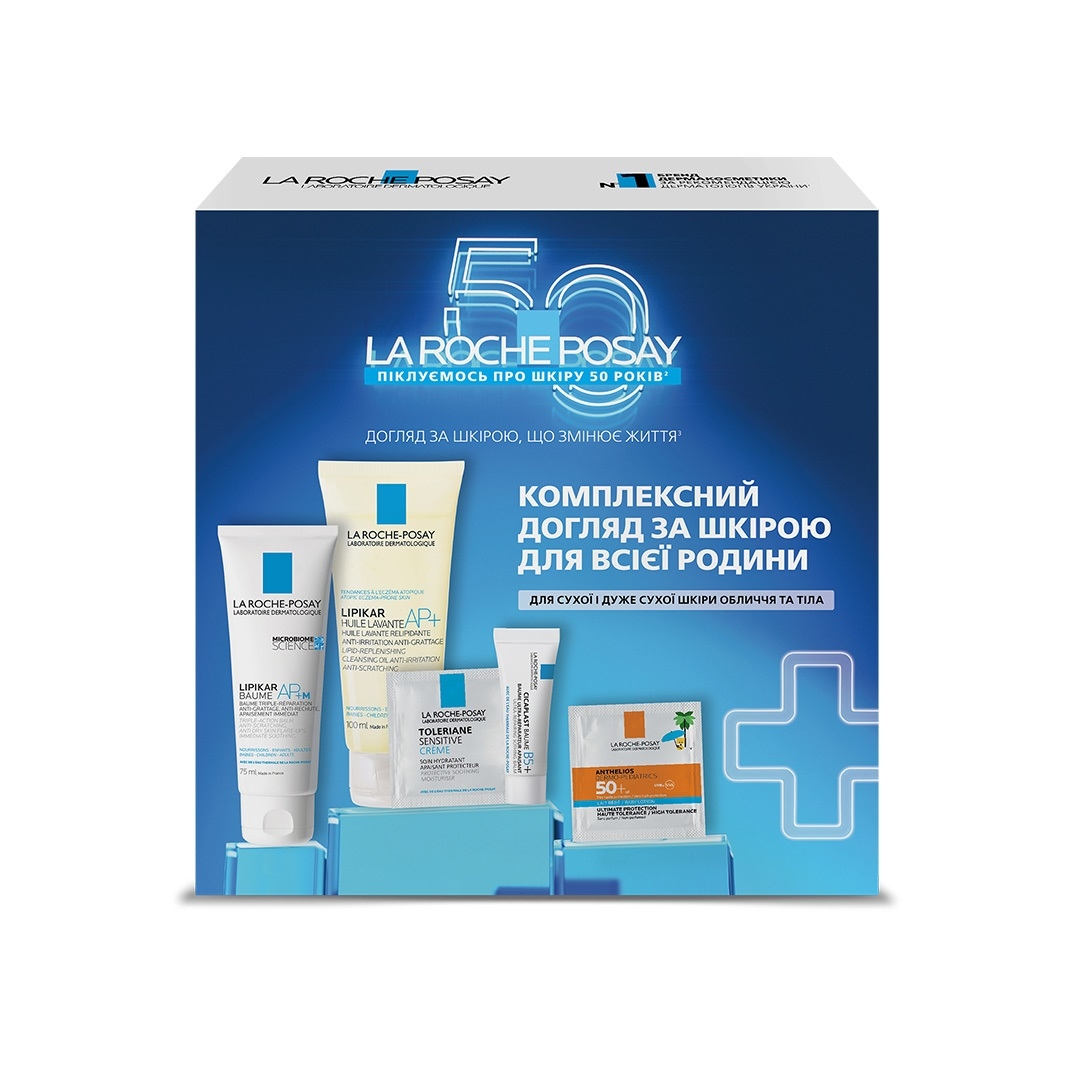 Набір La Roche-Posay Сімейний Ліпікар Бальзам АП+М 75 мл, Ліпікар Олія АП+ 100 мл, Цикапласт Бальзам Б5+ 3 мл, Толеран Сенситив крем 2 мл, Антеліос дермо-педіатрікс сонцезахисне молочко 2 мл