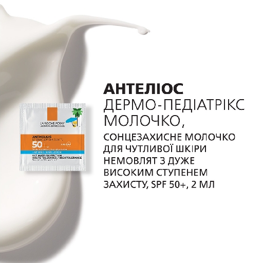 Сонцезахисне молочко для чутливої та схильної до подразнень шкіри немовлят, дуже високий ступінь захисту SPF 50+, 2 мл
