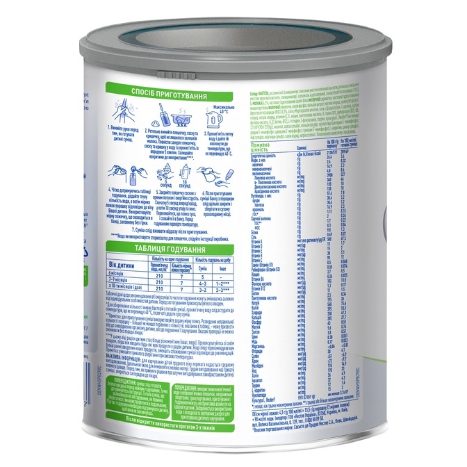 Суміш слід готувати безпосередньо перед кожною годівлею. Точно дотримуйтесь інструкцій. Готова суміш, що залишилася після годування, не повинна зберігатися та використовуватись надалі. Під час годування необхідно підтримувати дитину, щоб вона не захлинулась.
