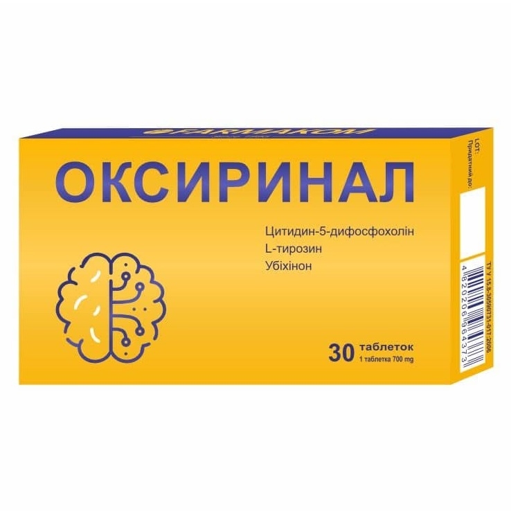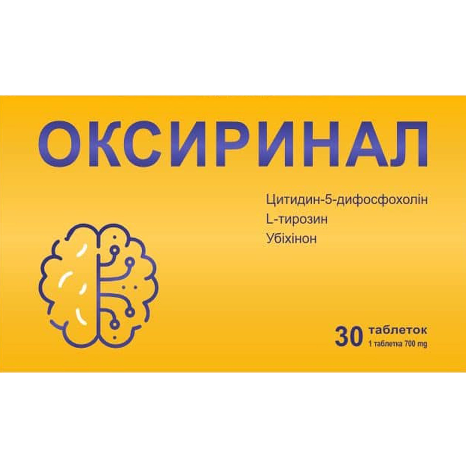 Оксиринал сприяє корекції настрою, харчової поведінки і допомагає запобігти загибелі нейронів. Завдяки цитидин-5-дифосфохоліну, L-тирозину та убіхінону сприяє стимуляції безперервної адаптації нейрона до нових функціональних умов, що є ключовою передумовою для зменшення пошкодження тканин мозку, спричиненого хронічним стресом, гіпоксією, ішемією та/або токсичним впливом на головний мозок. За рахунок комбінованого мембранного, нейромедіаторного і нейрометаболічного ефектів діє на рівні молекулярного каскаду. Сприяє уповільненню перекисного окислення ліпідів, захисту мембрани нейронів і мітохондрій від пошкоджень.