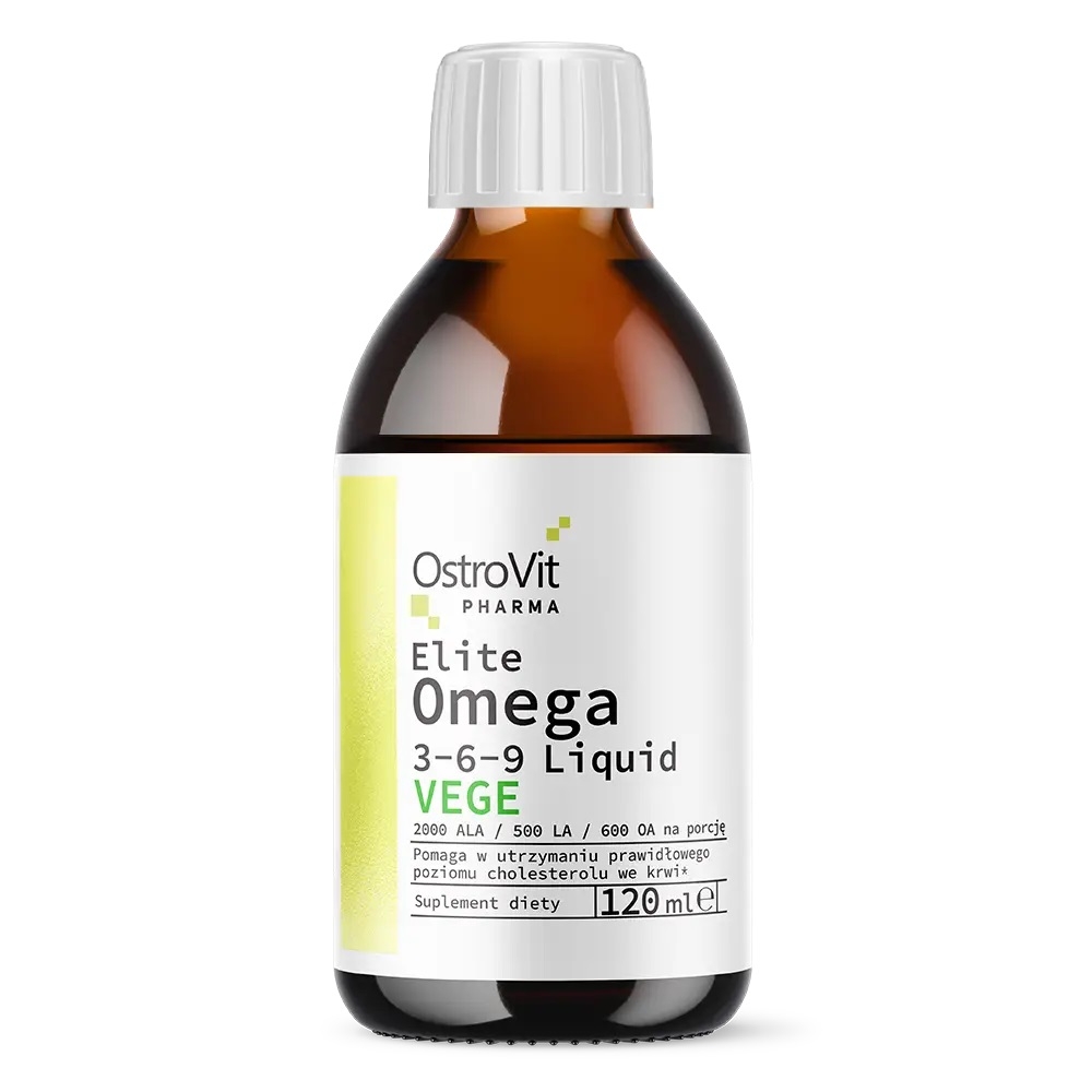 OstroVit Pharma Elite Omega 3-6-9 Liquid VEGE - це високоякісна дієтична добавка у вигляді олії, яка є джерелом ненасичених жирних кислот омега 3-6-9. Це веганський препарат з елітної лінійки OstroVit Pharma Elite, створений для людей, які дотримуються рослинної дієти, які хочуть доповнити своє щоденне меню цінними жирними кислотами.