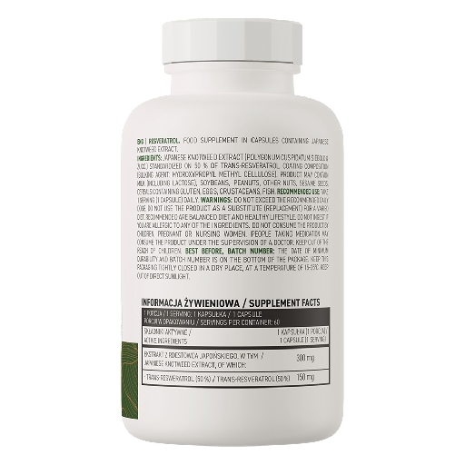 - Містить екстракт кореня японського вузлуватого дерева, стандартизований до 50% транс-ресвератролу - одна порція забезпечує організм 300 мг екстракту.