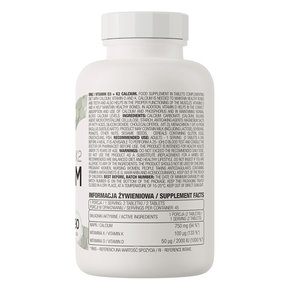 Вітамін K2 званий менахіноном, є органічною хімічною сполукою, яка відноситься до жиророзчинних вітамінів. Вітамін K2 накопичується в людини в основному в печінці. Він також може вироблятися бактеріями в шлунково-кишковому тракті, надходити з їжею (міститься в рослинних та тваринних продуктах) та у вигляді харчових добавок. Вітамін K2 MK-7, що використовується в OstroVit, - це та форма сполуки, яка найкраще засвоюється організмом людини, що позитивно позначається на засвоєнні біологічно активної добавки. Крім того, до складу продукту входить вітамін D3, який діє синергічно із вітаміном K2.
