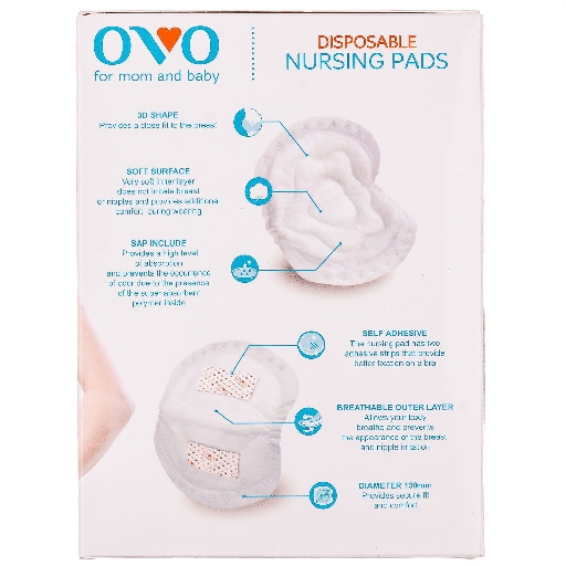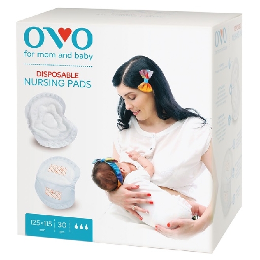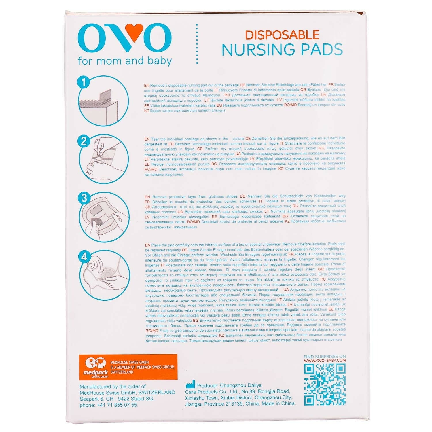 Вкладиші лактаційні OVO (ОВО) в бюстгальтер з підвищеним рівнем поглинання та індивідуальним пакуванням 30 шт