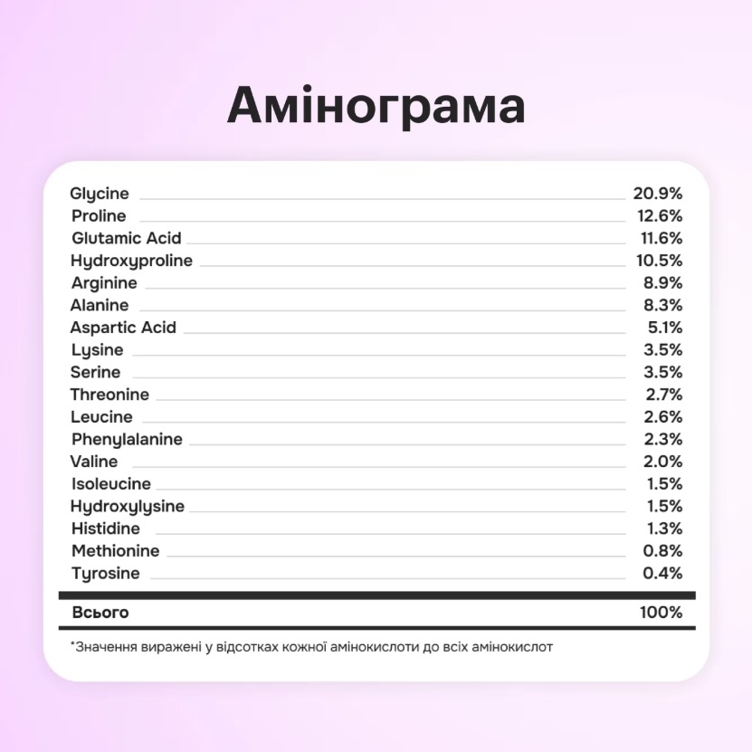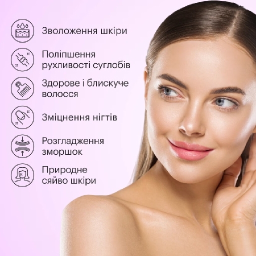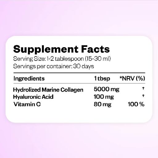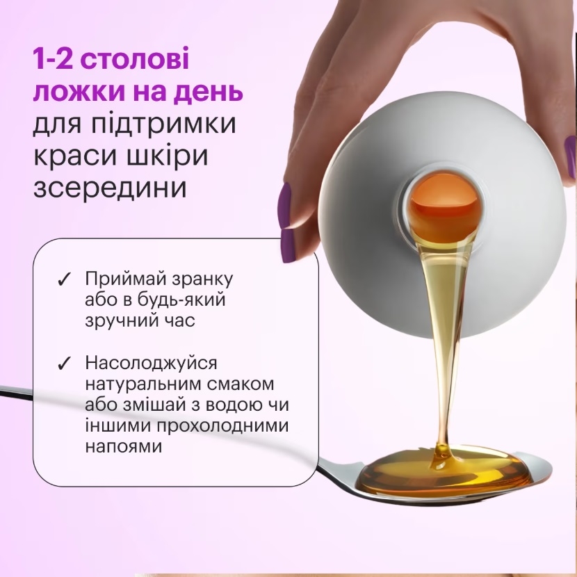 - 1 ст. л., це 5 г морського колагену, для загальної підтримки здоровʼя та пружності шкіри.