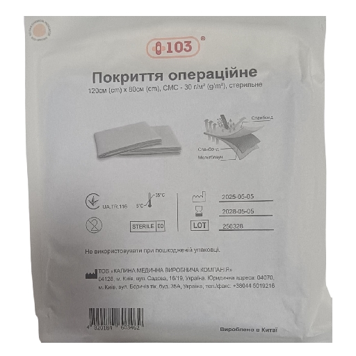 ПОКРИТТЯ ОПЕРАЦІЙНЕ 120см*80см +103 (СМС-30г/м2) стерильне
