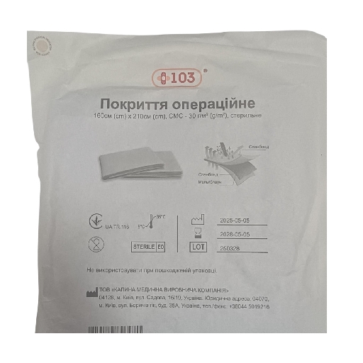ПОКРИТТЯ ОПЕРАЦІЙНЕ 160см*210см +103 (СМС-30г/м2) стерильне