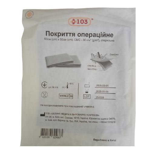 ПОКРИТТЯ ОПЕРАЦІЙНЕ 60см*50см +103 (СМС-30г/м2) стерильне