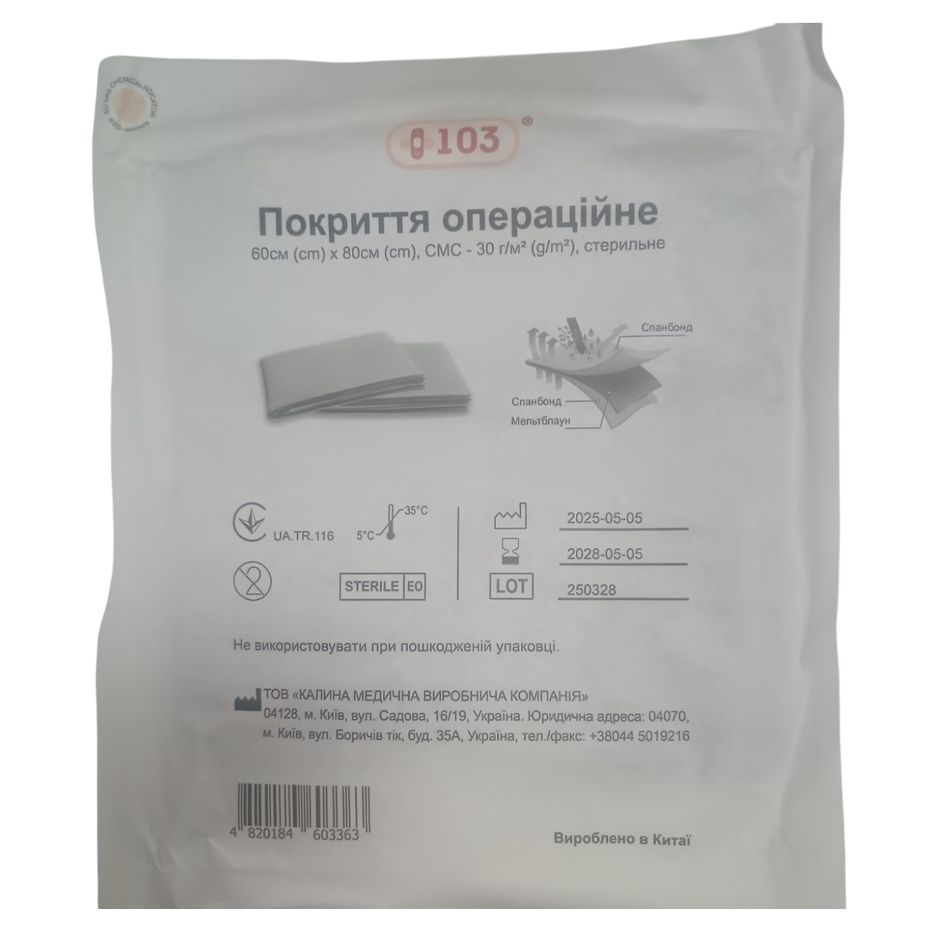 ПОКРИТТЯ ОПЕРАЦІЙНЕ 60см*80см +103 (СМС-30г/м2) стерильне