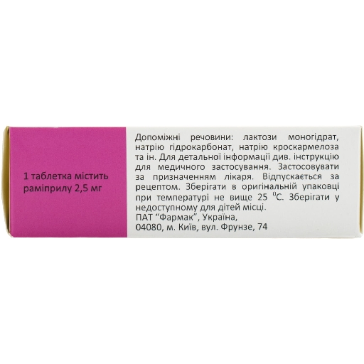 Початкова доза. Рекомендована початкова доза раміприлу становить 2,5 мг 1 раз на добу.