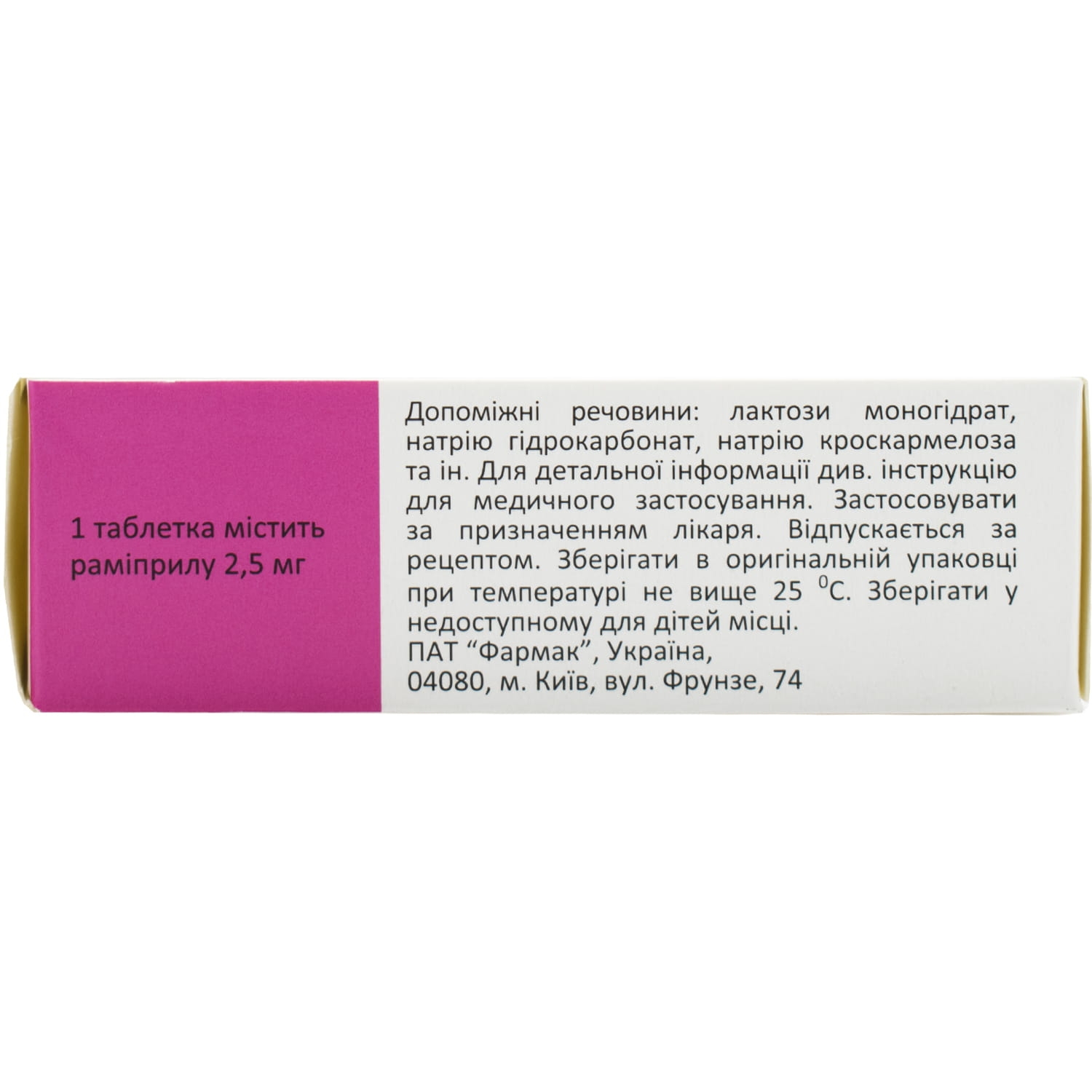 1 таблетка містить раміприлу 2,5 мг або 5 мг, або 10 мг;