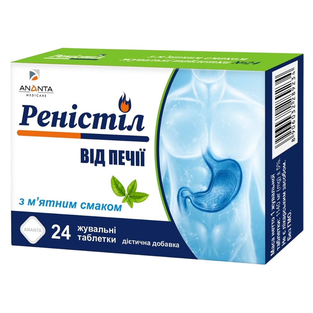 Реністіл від печії з м’ятним смаком жувальні таблетки №24