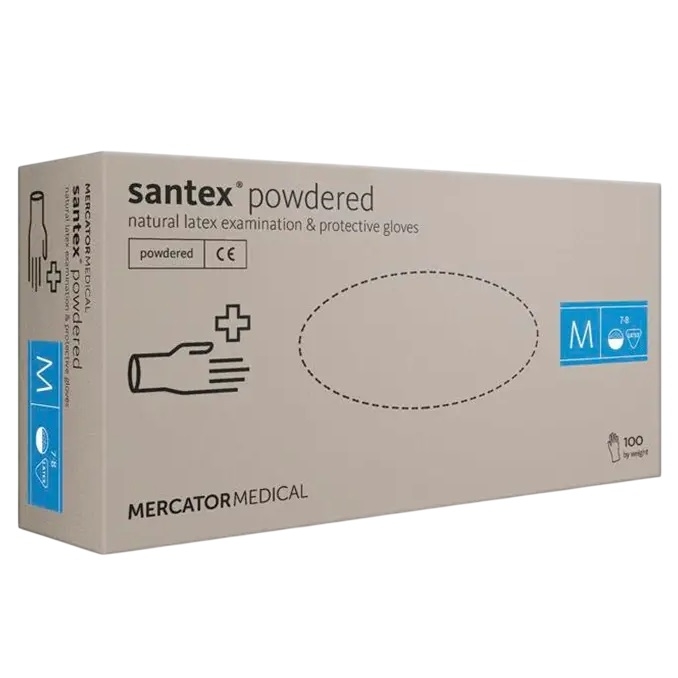 Рукавички оглядові Mercator Santex (Меркатор Сантекс) медичні латексні припудрені, нестерильні розмір M, пара