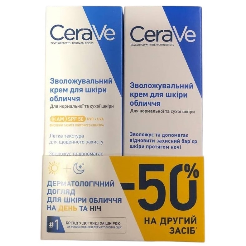Набір CeraVe (Сераве) крем зволожуючий з SPF50 денний 52 мл + крем зволожуючий нічний 52 мл