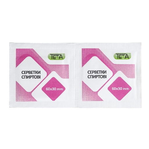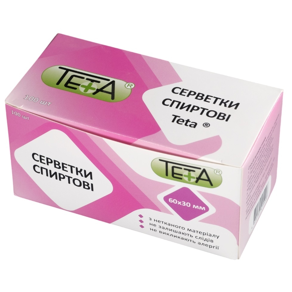 Серветки спиртові Teta (Тета) 60 мм х 30 мм 100 шт