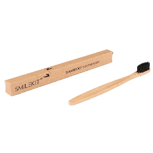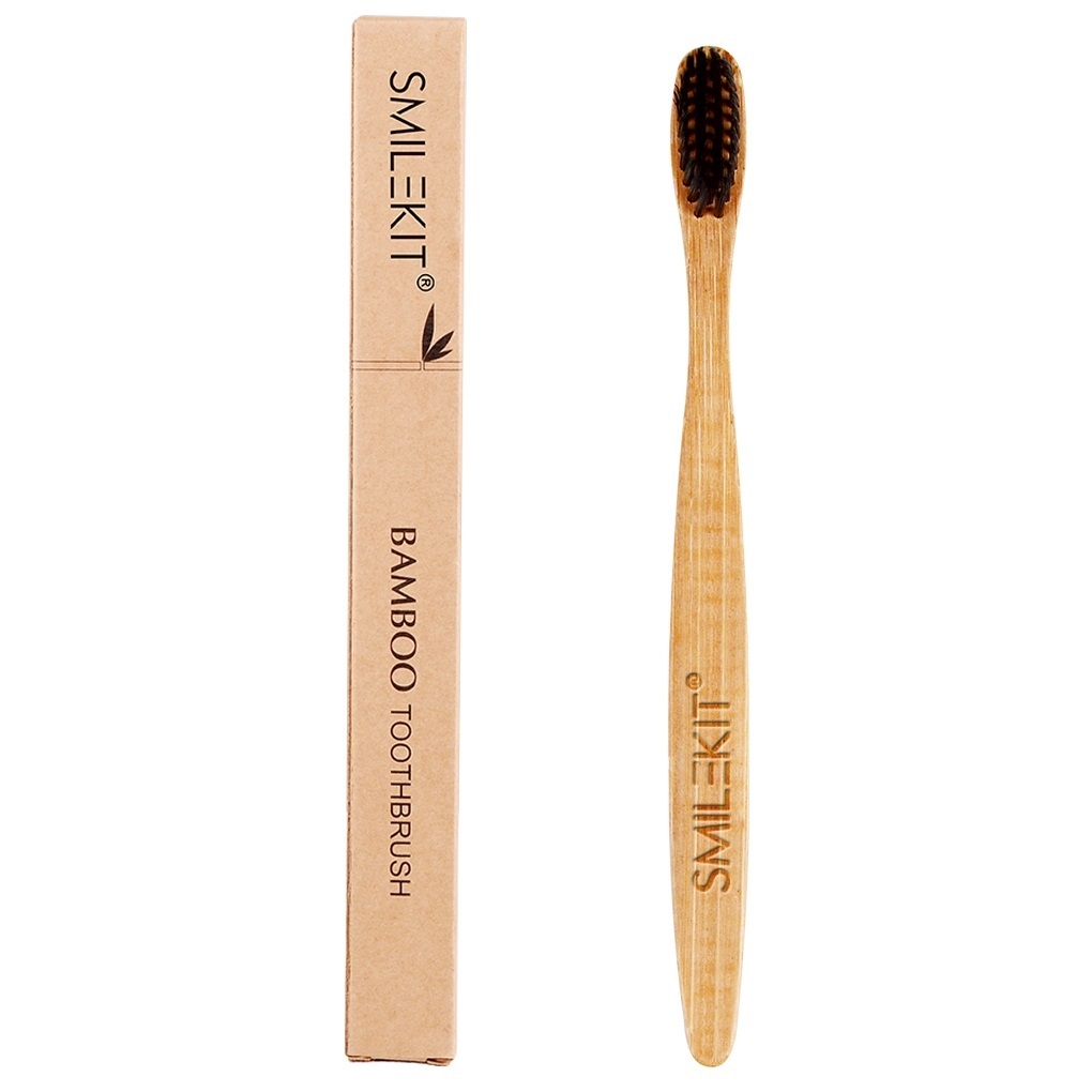 Зубна щітка SmileKit з натурального бамбука з м'якими, густо розміщеними та еластичними щетинками для ефективного щоденного очищення та дбайливого відбілювання зубів. Вона відмінно видаляє зубний наліт навіть у важкодоступних місцях, зберігаючи здоров'я зубів і ясен.