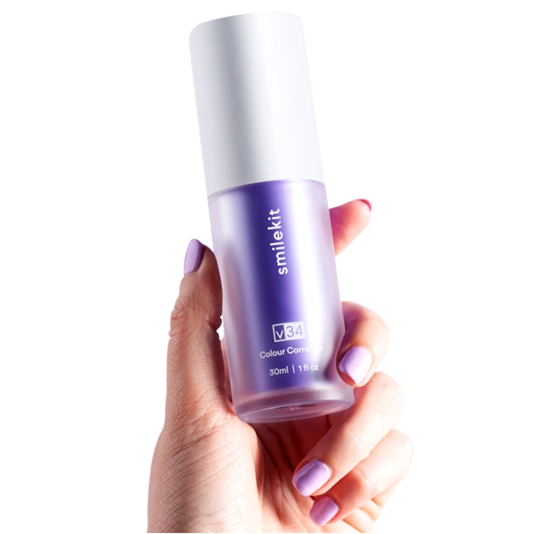 V34 — це засіб для миттєвого відбілювання зубів без перекису, який діє як консилер, але для Ваших зубів. Завдяки технології кольорокорекції він приховує жовті відтінки зубів, покращуючи та посилюючи білизну Вашої посмішки.