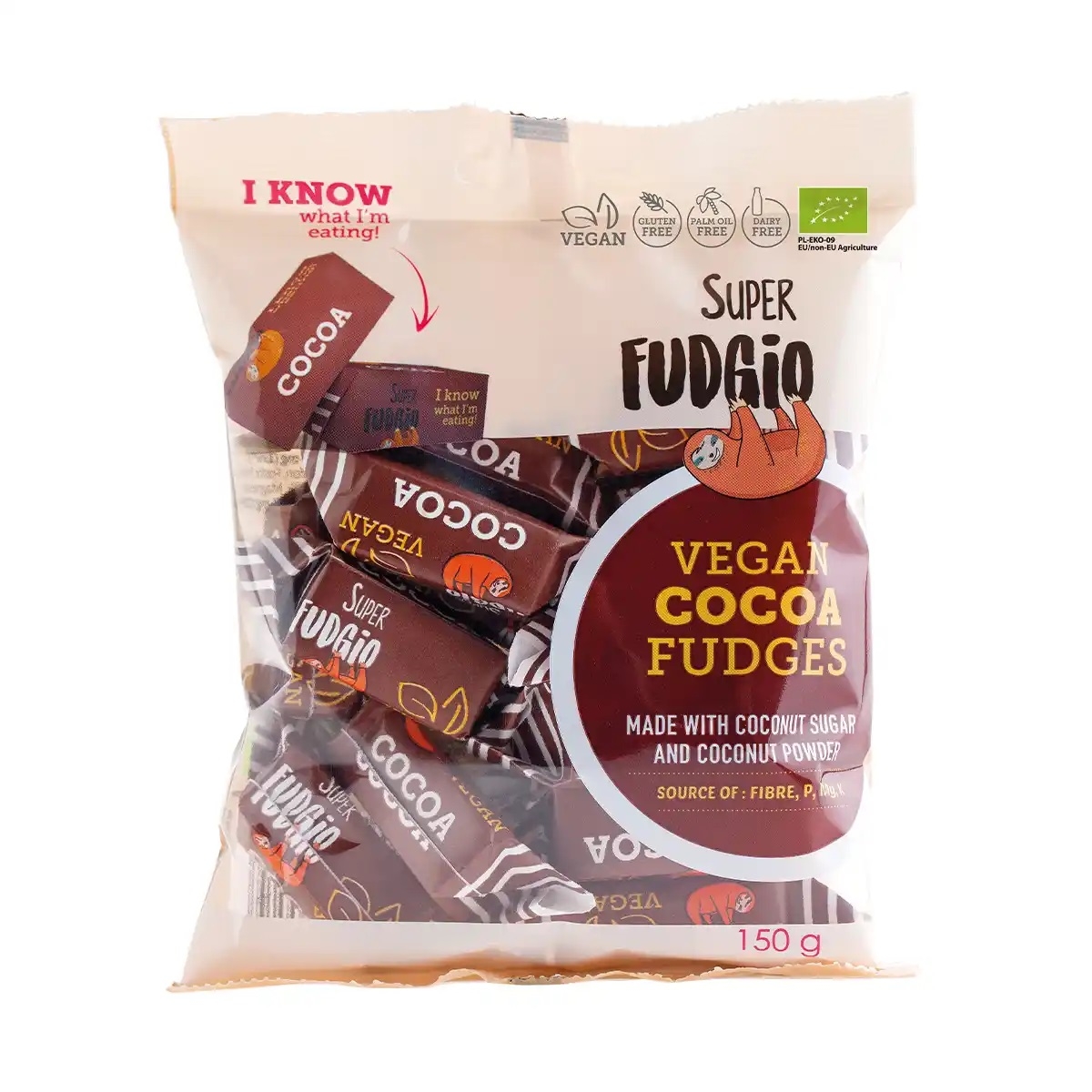 Органічні цукерки Super Fudgio Какао 150 г створені як альтернатива цукеркам, які містять звичайний цукор. Ідеальний солодкий та корисний перекус.
