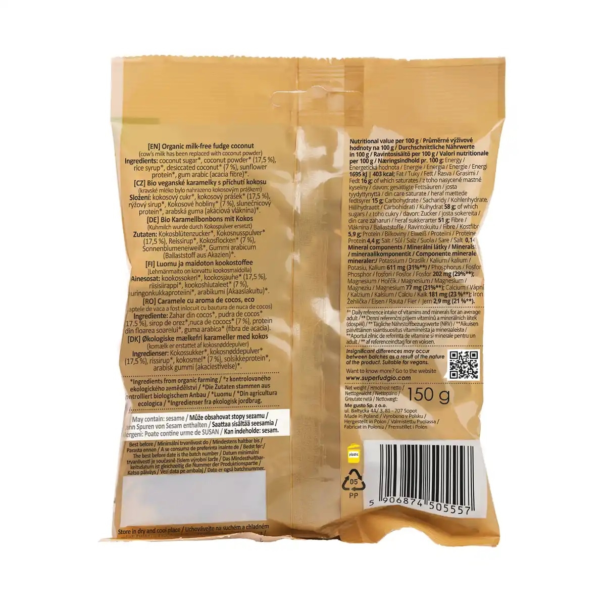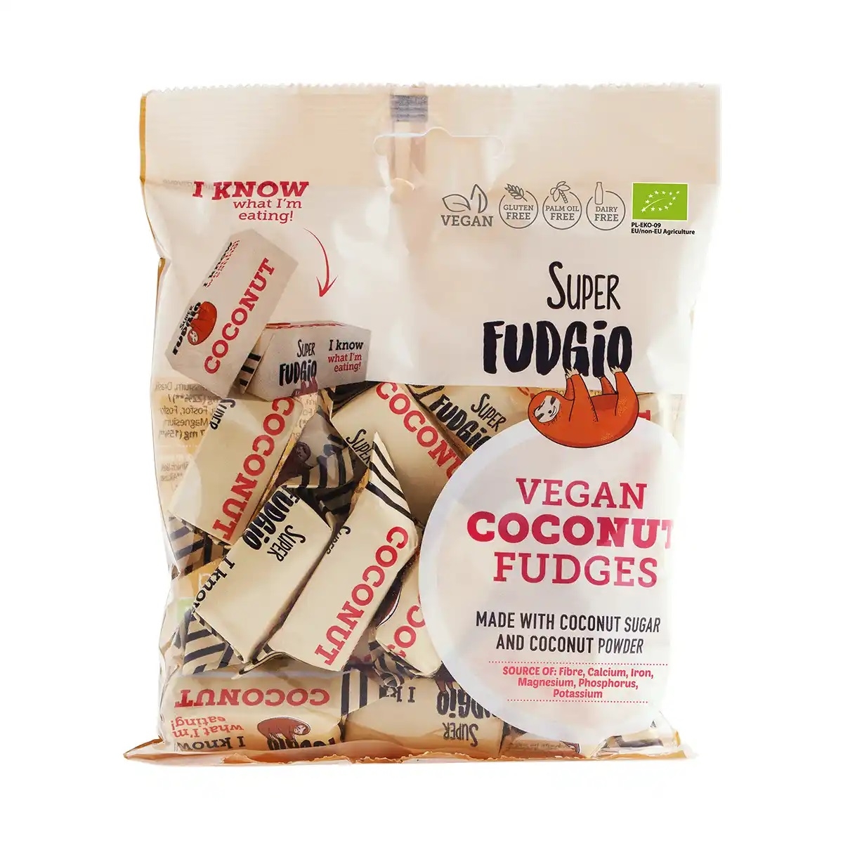 Цукерки Super Fudgio Кокосові 150 г — м'які, ніжні та неймовірно ароматні органічні солодощі, які тануть у роті та дарують справжнє задоволення. Натуральний кокос надає цим цукеркам насичений, екзотичний смак, що нагадує улюблену з дитинства іриску, але без шкідливих добавок та алергенів. Super Fudgio – це турбота про здоров'я без відмови від солодкого.