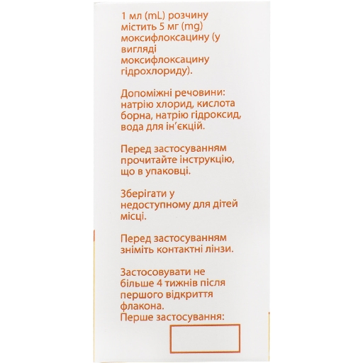 1 мл розчину містить 5 мг моксифлоксацину (у вигляді моксифлоксацину гідрохлориду);