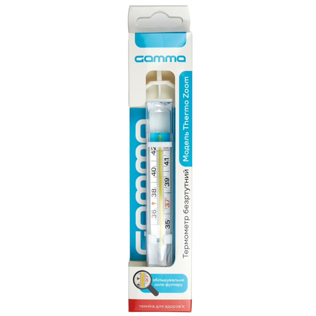 Медтехніка британської торгової марки Gamma вирізняється надійністю і зручністю. Термометр моделі Thermo Zoom виготовлено з надійних матеріалів, а як термометричну рідину в ньому використано суміш галію, олова та індію.