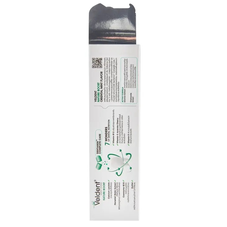 Зубна паста Weldent Nature Boost з екзотичним відчуттям свіжості завдяки східному м'ятному смаку. Поєднує в собі потрійну силу антиоксидантних, протизапальних та антибактеріальних компонентів: екстрактів солодки та ромашки, розроблених з Dentamin Complete Care, 7 дивами преміальних мультивітамінів та поживних речовин для підтримки здоров'я ротової порожнини.