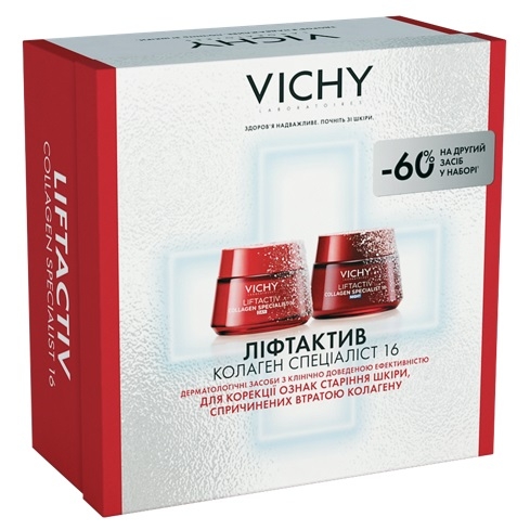 1. Віши Ліфтактив Колаген Спеціаліст 16 денний антивіковий крем з ко-бондинг технологією для корекції 16 ознак старіння шкіри обличчя