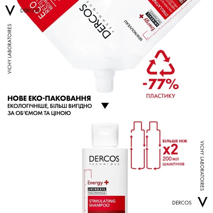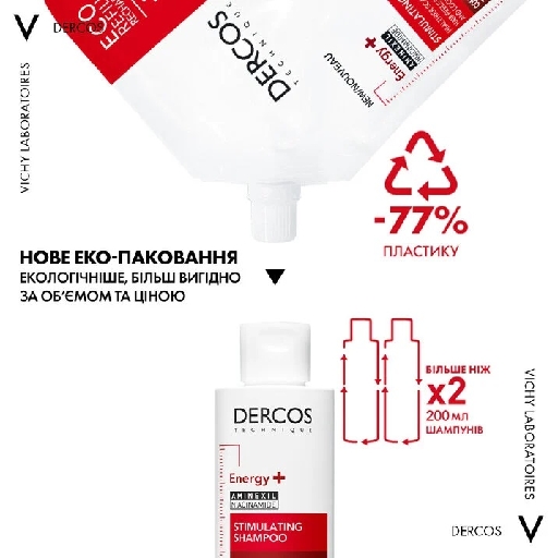 Шампунь Vichy (Віши) Dercos Energy+ (Деркос Енерджи+) для волосся тонізуючий з Амінексилом та Ніацинамідом від випадіння рефіл 400 мл